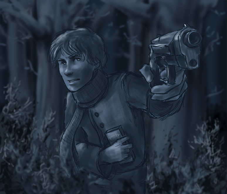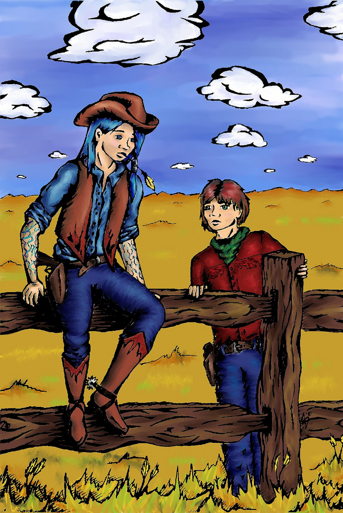 ![]() | On Tomgeeks, we had an art trade to draw characters out of their genre, so here's Between Places, the western, as drawn by crazedinsaneone. | |