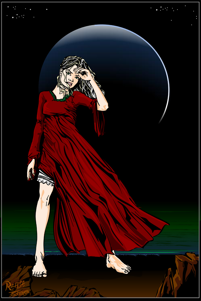 ![]() | Sometimes I get fanart that makes me seethingly jealous of other people's art skills. Man, if I could design a dress like that... also, this is the first fanart of Almarien Vilanar I've ever received! From Tales of the Travelling Gnome. | |